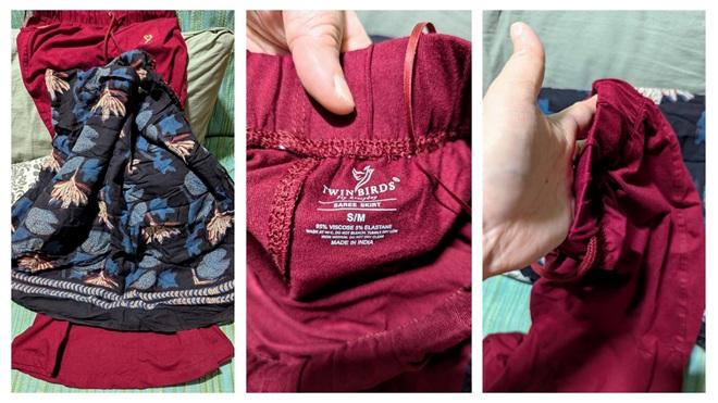 「Myntra」で着用画像を投稿している消費者の中には、このスカートをクルタやニットなど、長めのトップスと合わせて着ている方もいらっしゃいました。