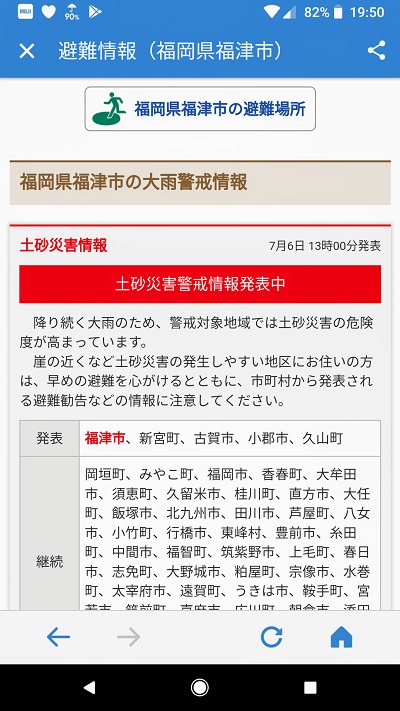 However, the rain we were experiencing since the early evening yesterday is quite abnormal and dangerous. First, the rain clouds look massive, covering up almost a Western half of Japan. Second, there is no sign of it to stop at all by this evening (6th July), and the news has been reporting all the time the latest forecast and evacuation information since morning. The government's disaster control department has issued "大雨特別警報 (O-ame Tokubetsu Keiho: Emergency Warning for Heavy Rain)" in Fukuoka, Saga, Nagasaki, Hiroshima, Hyogo, Kyoto and other prefectures. It is the most critical warning issued when people in the impacted region(s) should be extremely alarmed for the forecast of the rain, which is as heavy as that could occur once in several decades. Everyone in the affected area must prepare for evacuation and other acts that should save own life.