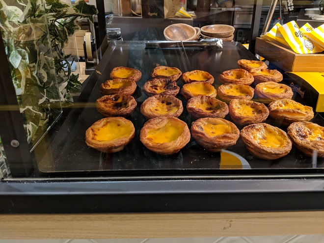 The place offers a range of "eggcellent" breakfast menu but the prices are way too high for me. I am just satisfied with a "Nata" (200 yen per piece) and coffee for the morning. Pao de Lo is available only for takeout, and I did so for my birthday morning. It was yummy, but I wanted them to stick to the original recipe; it was not necessary for them to add some lemony flavour.