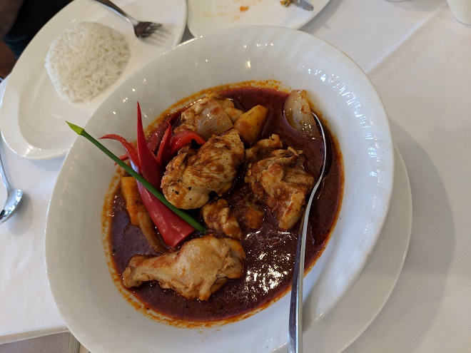 給仕さんによると、このカレーはかなり辛いということで、スチームライスとの組み合わせが推奨された。