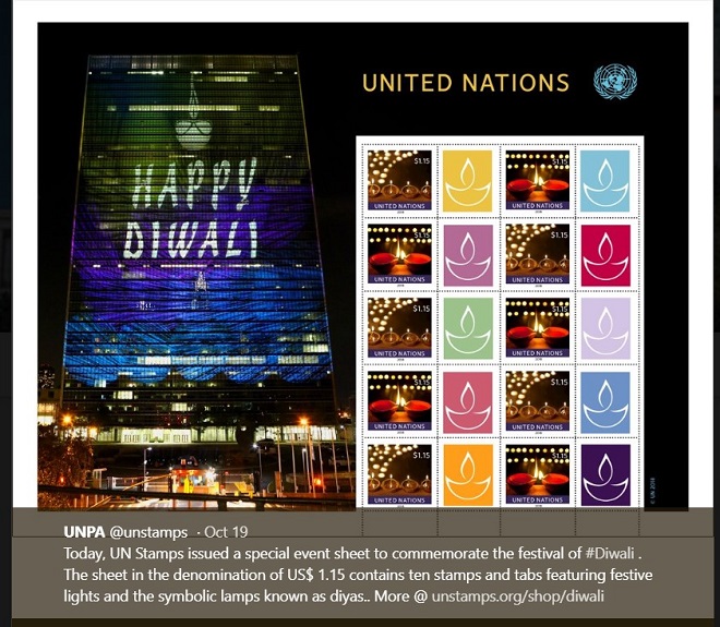 その1年で最も大切なディワリを控えた先月、ニューヨークに本部を置く国連ではディワリを祝う特別な記念切手を発表した。