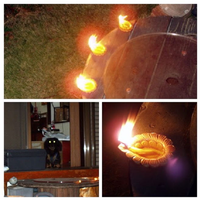 写真は前回ディワリを福岡で過ごした2009年時のもので、プネーからディヤーを持って来て、実家の庭のテーブルに灯していました。今年も、たこちゃんと同じことして遊べると思っていたのに。