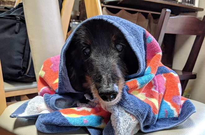 It's been just past a week since Taco-chan left us. According to the Buddhism custom, we have completed "sho-nanoka," meaning the first seven days after the spirit departed from the body. Obviously, I still feel like if I call Taco-chan, he appears from around the corner of the room merrily, wagging his tail and jump on my lap. He was my best friend, teacher, philosopher, and for my mother, a good life partner, especially after my father passed away.