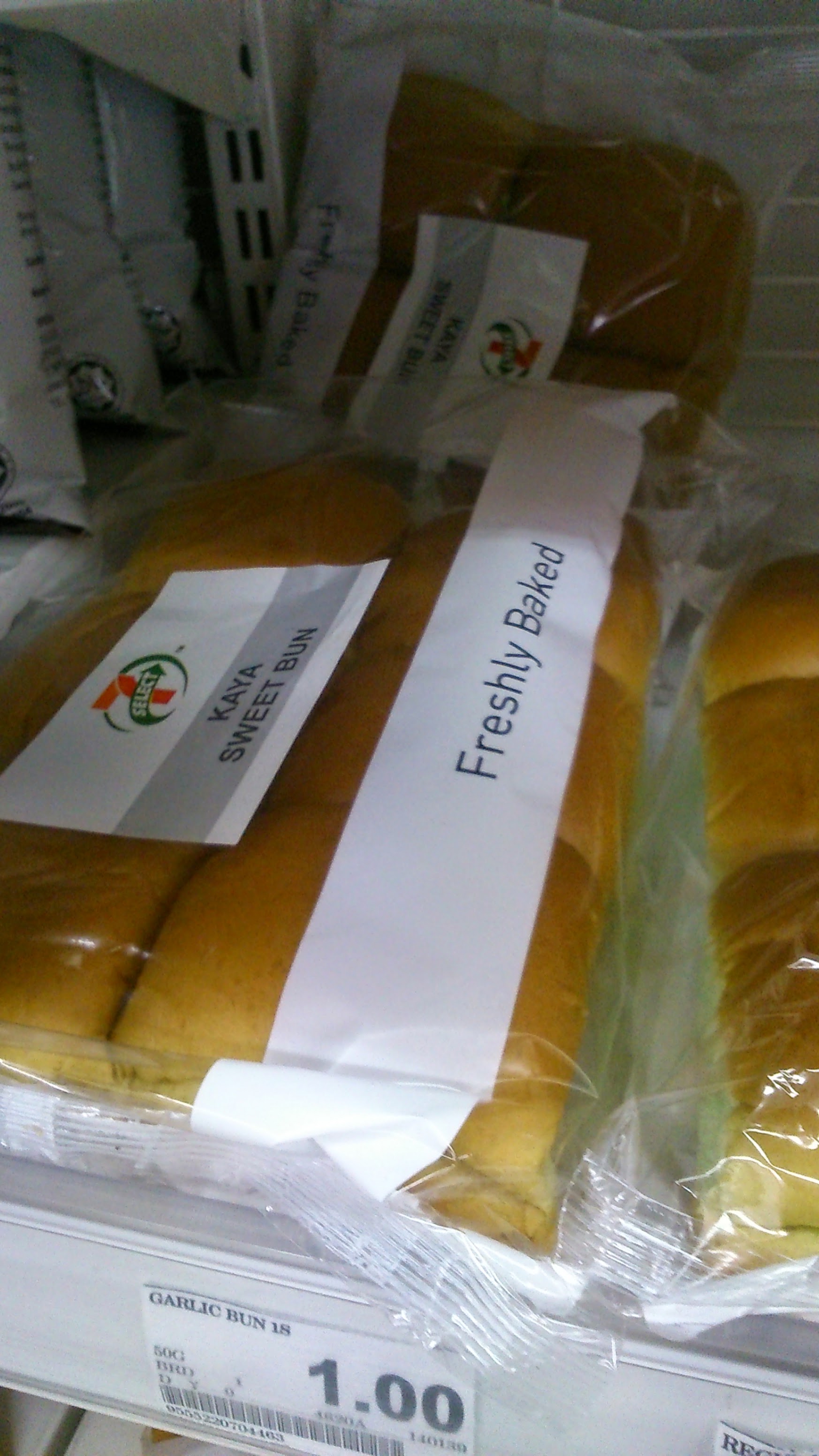 シンガポールのセブンイレブンでは、オリジナル・ブランドで、カヤ・ジャムを混ぜ込んだ甘いパン「Kaya Sweet Bun」が陳列されていました。