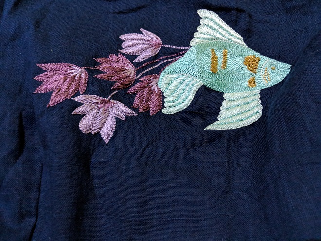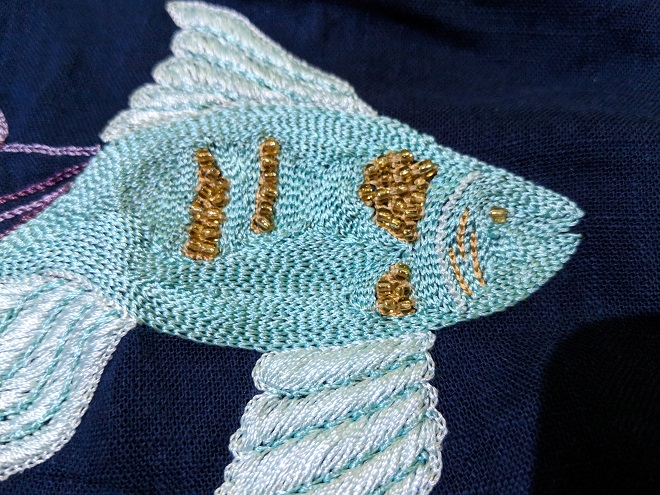 お魚の刺繍。