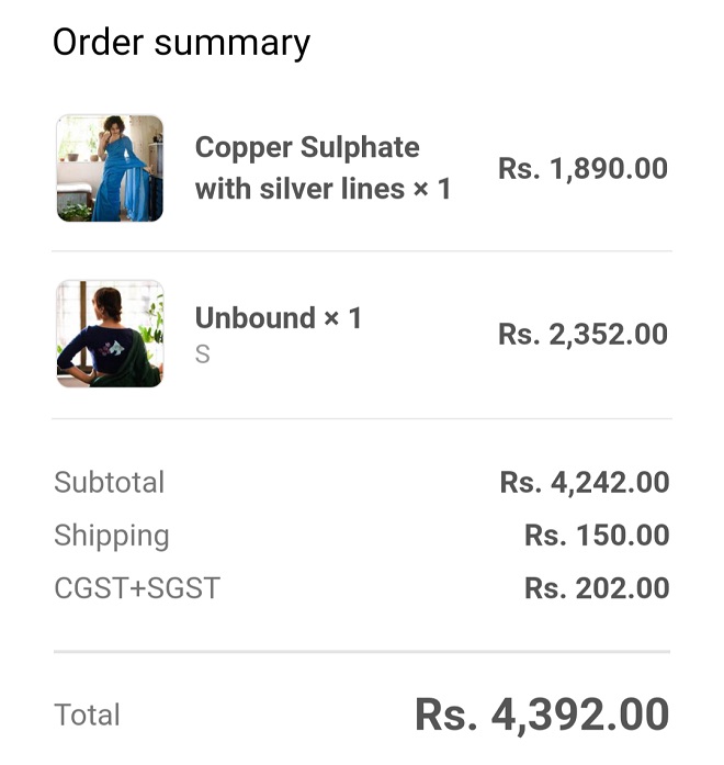 先にオーダーしていたグルガオンに店舗のある「Chidiyaa」の商品よりも、後から衝動買いしたムンバイーの「Suta」の商品のほうが早く届いたので、せっかくなので軽くレビューしたい。