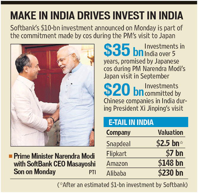 別の情報筋では、ソフトバンクが大手オンライン小売業者「スナップディール(Snapdeal)」に投資する計画があることに言及しているが、今回は事実関係が明らかにならなかった。