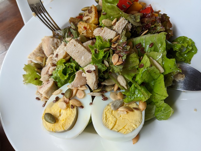 こちらはコーレーガーオン・パークの「Third Wave Coffee Roasters」(06-Feb-2020記事参)でいただいた「Keto Salad」です。亜麻仁をはじめとする香ばしい種子の食感が楽しい、おいしいサラダで、お昼ならこれだけでじゅうぶんにお腹いっぱいになりました。