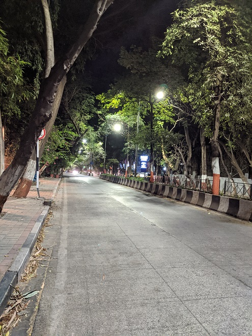 午後9時半ぐらいの、静かなカルヤーニー・ナガル。
