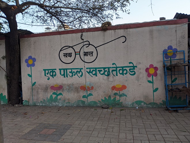 「清潔への第一歩(एक पाऊल स्वच्छतेकडे)」。
