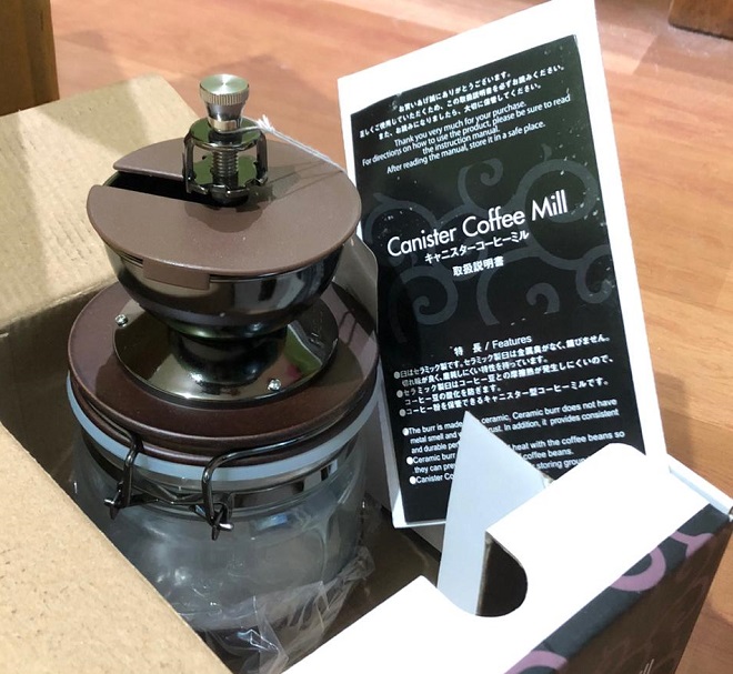 コーヒー豆だけでなく、先週床に落として壊してしまった、日本から持ち帰ったハリオ(Hario)のコーヒーミルのピンチヒッターとして緊急で購入した、同じくハリオ製のハンドミルも、注文から1週間以内で、同時に注文したコーヒー豆やフィルターなどとともに、無事に届いた。