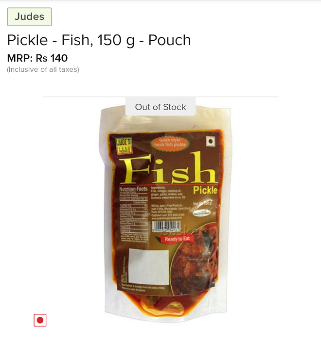 ネットスーパー「BigBasket」で、見たことのない「Judes」というブランドの袋(パウチ)入りフィッシュピクルスを見つけた。