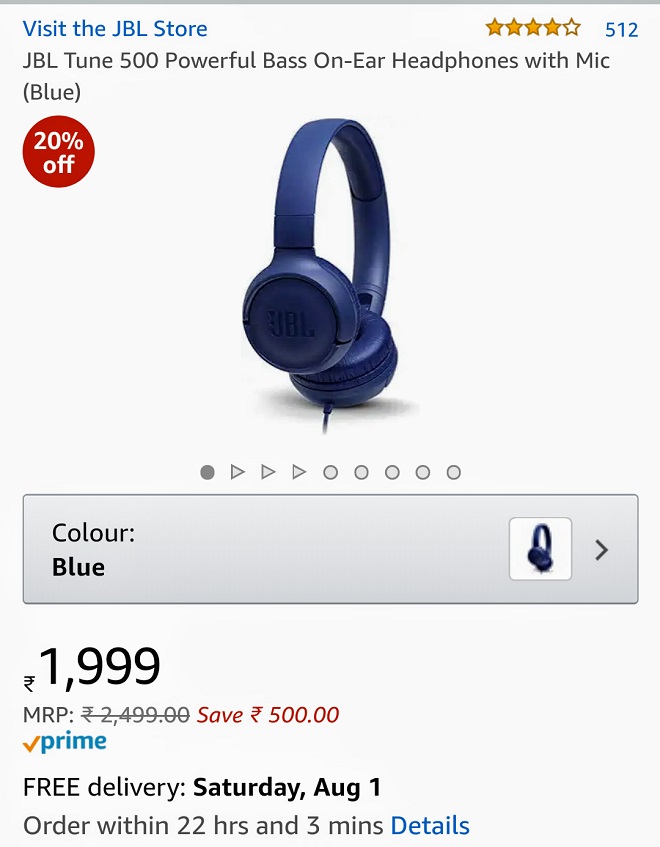安定のJBL製品がノーネーム製品と400ルピーぐらいしか違わないので、迷わず選んだ。