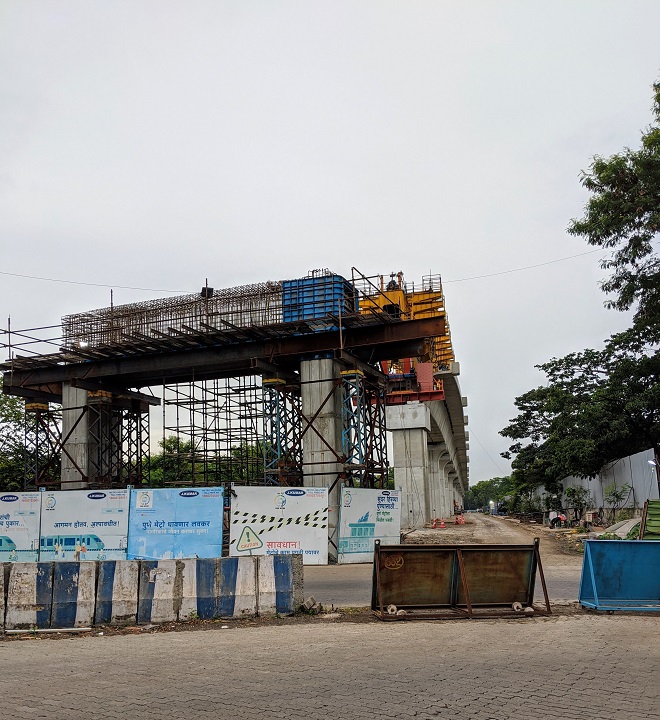 コロナだロックダウンだと騒いで在宅している間に、カルヤーニー・ナガル(Kalyani Nagar)のかつて空地(競争馬の放牧場)だったところに、メトロ高架の支柱がどんどん建っていた。