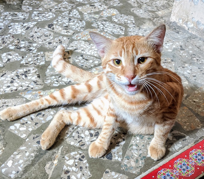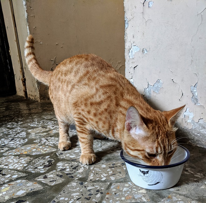 しかしその前に猫たち1匹1匹に深々とていねいにあいさつしてから、朝食をふるまうことは絶対に忘れない。