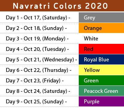 出典:Navratri Colors 2020 - Navratri 9 days Color list, Significance
