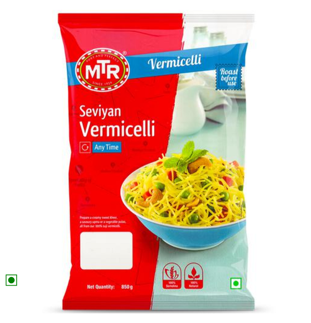 下の写真のバーミセリは使う前に乾煎りする手間がかかるが、天下のMTR商品だけあってとてもおいしいのでおすすめだ。