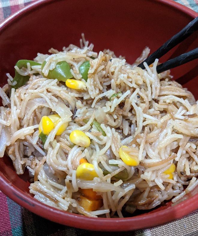 なお、乾煎りしたバーミセリを別の鍋で7~8分、あらかじめ茹でてから野菜と炒めてもよい。