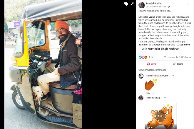 投稿主のマンジリ(Manjiri)さんによると、ハーヴィンダー・スィン(Harvinder Singh)さんの運転するオートリクシャーを利用したのは今月26日。