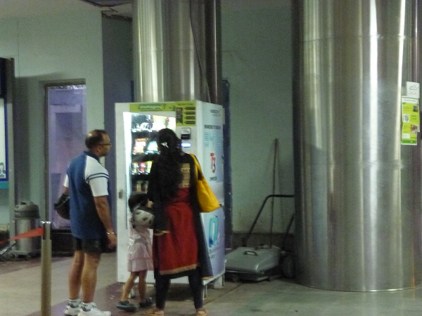 こっそり撮ったドワルカ・セクター10駅構内。お菓子や飲料が収まる自動販売機があった