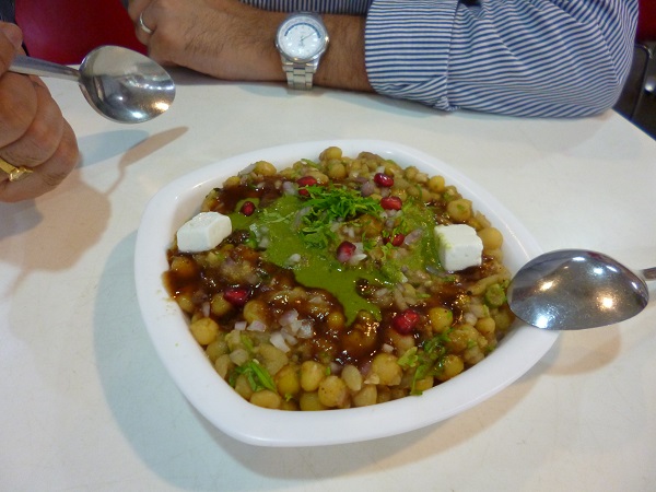 デリーで最初に食べたもの、カチョリ・チャート。パニールとザクロの実がトッピングされて豪華。