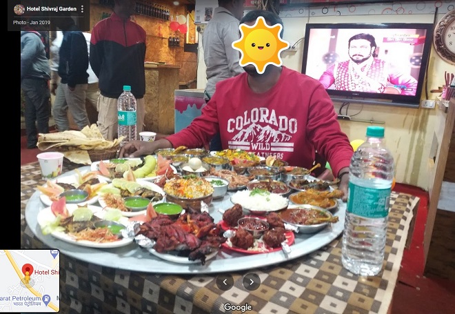 「Hotel Shivraj」が果敢なチャレンジャーに提供している巨大ターリーは、その名も「Bullet Thali」。