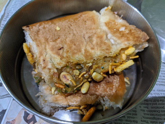 フィリングは、フライパン(インド鍋)に油を熱し、茹でて潰したジャガイモを入れ、上のダベリマサラを加え炒め、そこにMeethiチャトニー、塩、ココナッツフレーク、味付け(マサラまたはコショウ、チリなど)ピーナッツ、タマネギ、コリアンダーリーフ、シェウ、ザクロを加えて軽く混ぜ炒める。