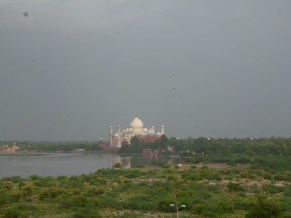 ※写真はアーグラー城から眺めたタージマハル。ヤムナー川の水量も少ないようだ。