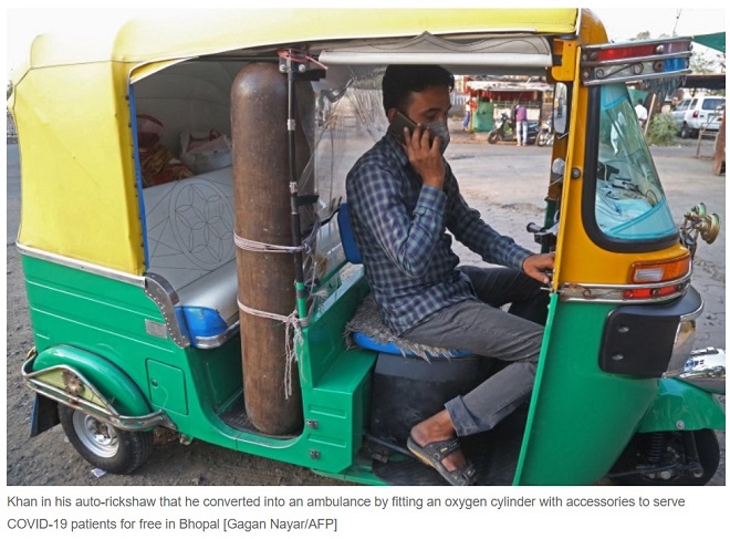 Rickshaw ‘ambulance’ offers free oxygen to India’s COVID patients