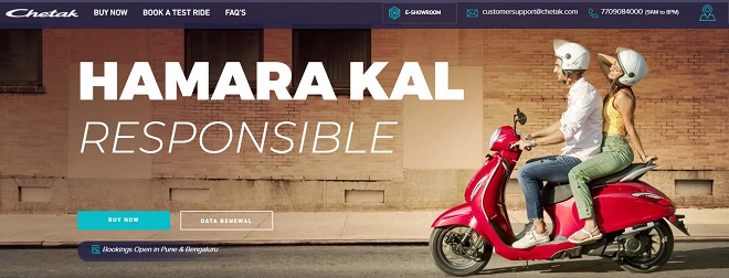 Image source: Bajaj Auto "Chetak - A Brand new electric scooter - Price, Colours, Range"