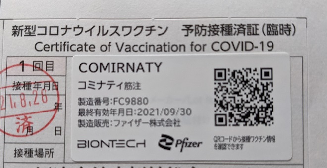 選択したのは、より近くの会場で受けられるという理由から、ファイザー社製「コミナティ」ワクチンだ。