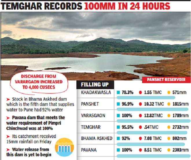 うちテムガール(Temghar)は、10日朝までの24時間で、プネーの主な水源となっている5つのダムのうちで最も多い、100ミリの降水量を記録した。