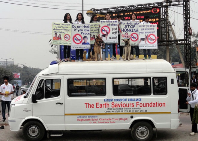 スラム街の人々への武道の指導などを含めた生活向上や、野良動物の保護などの活動に取り組むNGO団体、「アース・セーバーズ・ファウンデーション(Earth Saviours Foundation)」を指揮するラヴィ・カルラ(Ravi Kalra)さんは、公安や行政に働きかけ、クラクションを控え、それよりも運転マナーを向上することをドライバーに徹底する教育を行うことで、騒音公害を減らす啓蒙活動に従事している。