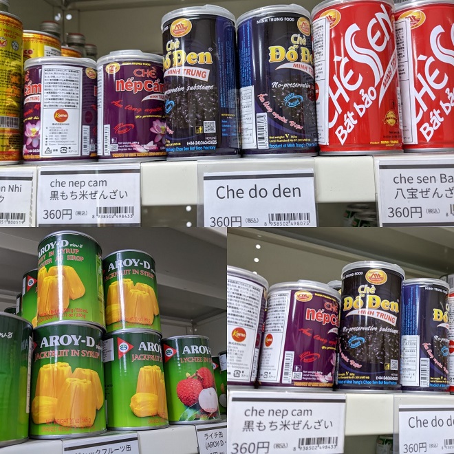 Vietnamese grocery shop sells a variety of canned "Chè."