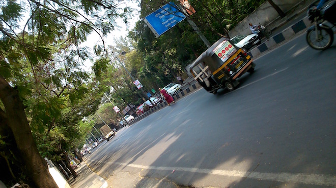 ところで少し分りにくいですが、オートリクシャーの前方を歩く、えんじ色のワンピースみたいな着衣の方は、プネにあり世界的に有名となっている瞑想施設、「Osho Meditation Centre」に来ているのでしょう。