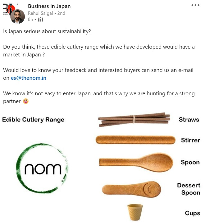 日本市場向けに「食べられるカトラリー」はいかが、ムンバイーの企業がパートナー募集中