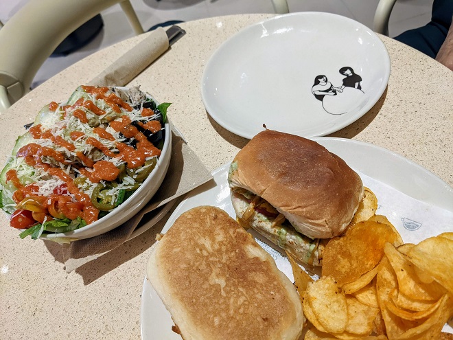スペシャルティコーヒーは残念ながらまだ提供していなかったので、おなじみアメリカーノとケトサラダ(Chicken)、シッダールタはチキンのサンドイッチを注文、アプリでディスカウントを受けられたのでこれで600ルピーちょっとと、スタバと比較するとだいぶリーズナブルだ。