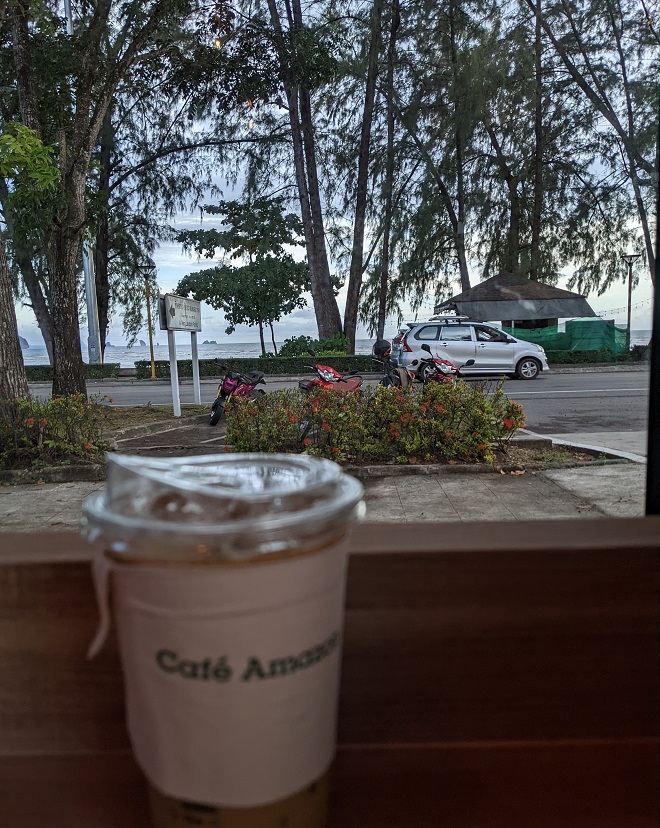 「Cafe Amazon」を1杯やりながら、濁った海を眺めるモンスーンのクラビかな。