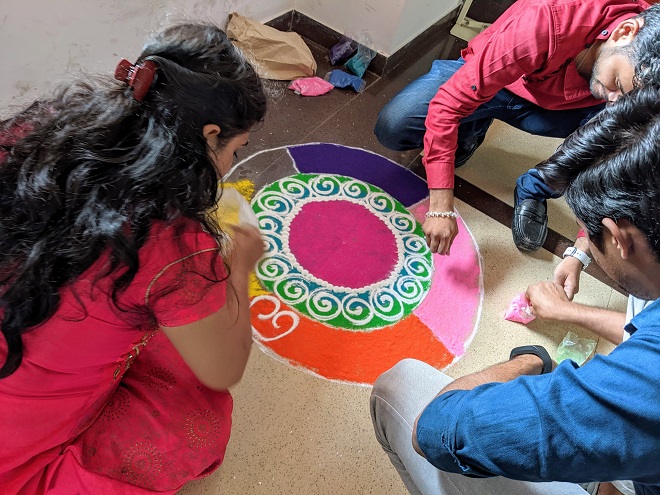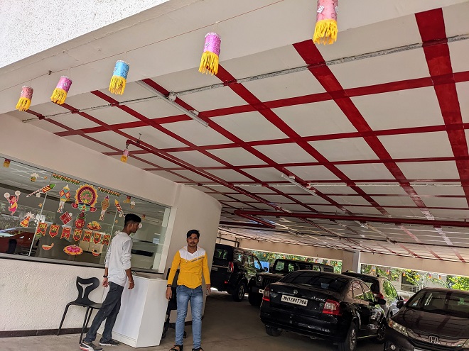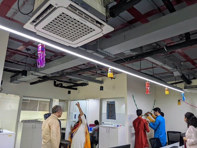 フリーランスになって以来、オフィスでのディワーリーに縁がなかったので、みんなで力を合わせた心温まるデコレーションに感無量でした。