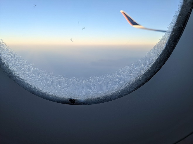 「到着地羽田の気温、摂氏16度」と暖かそうでホッとする。