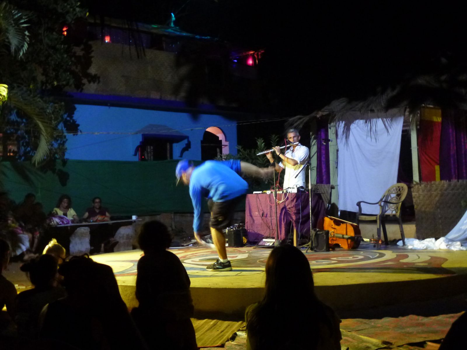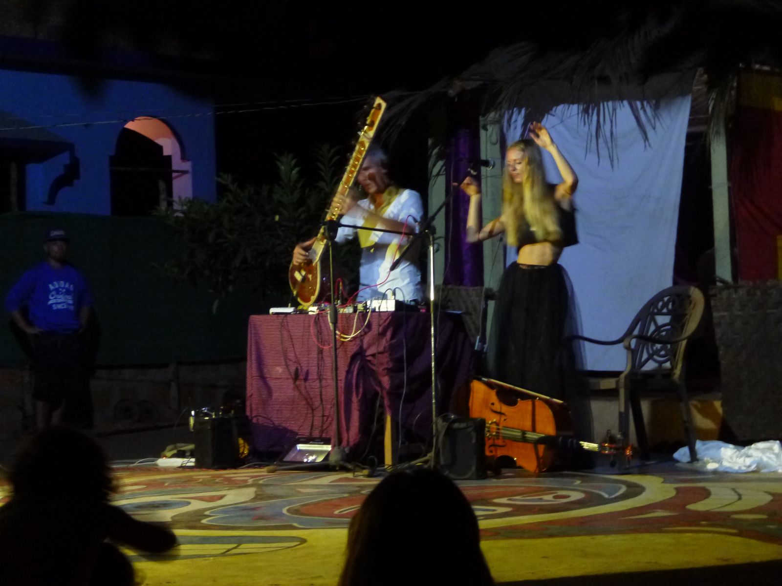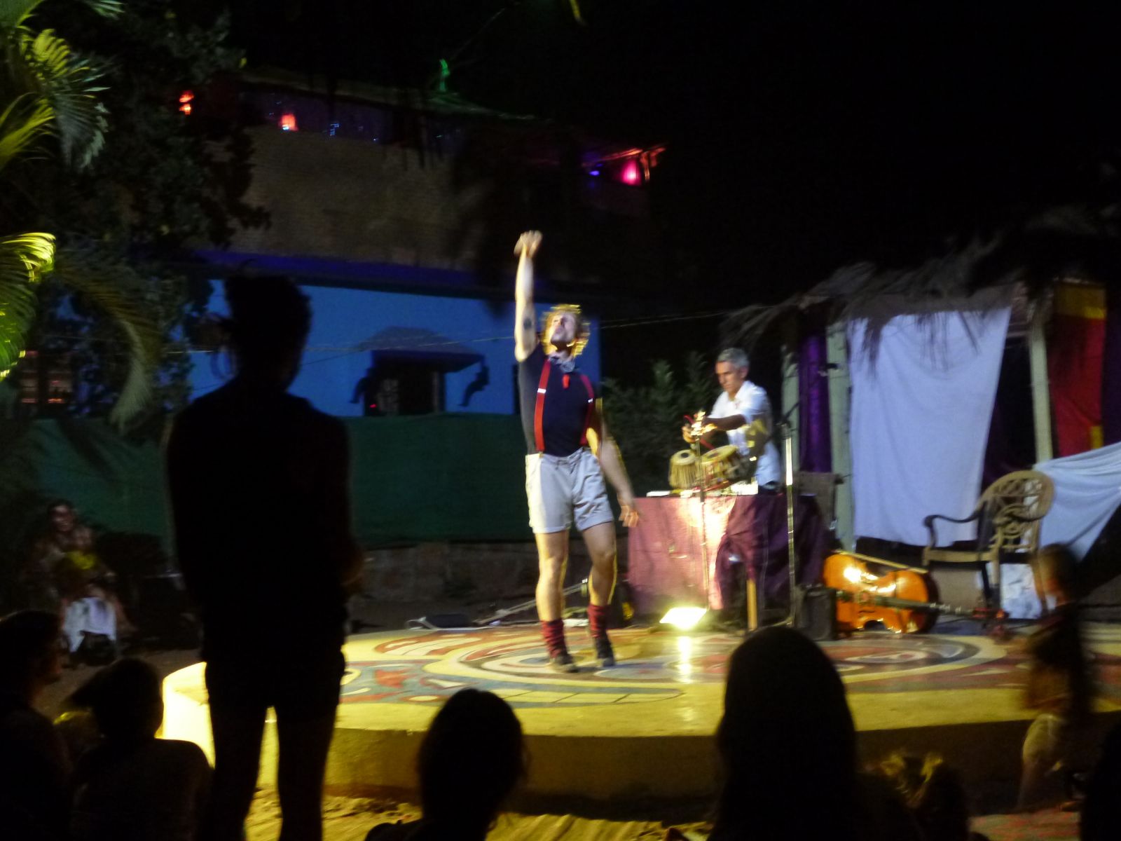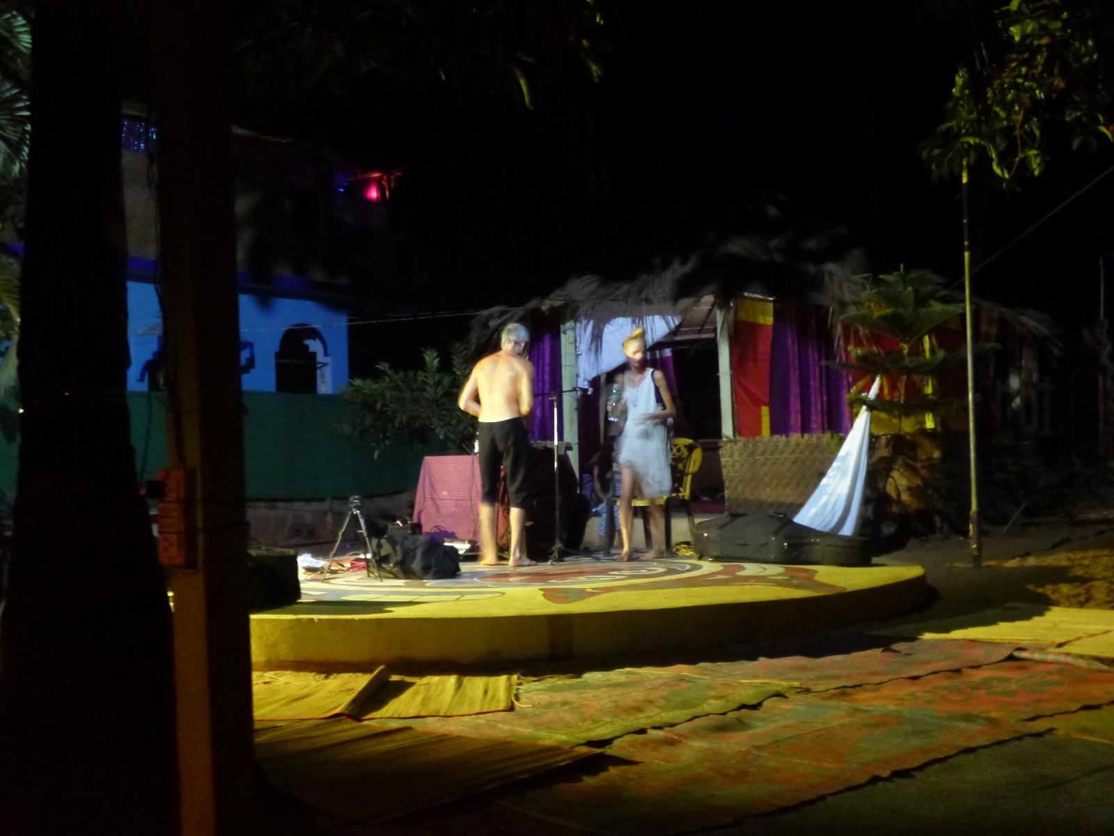 エキゾチックなモザイク模様にタイルが貼られた、コンクリート製の丸い特設ステージを囲むようにしてテーブルのならぶ、この場所こそが、ゴアきってのパフォーマンスが夜な夜な繰り広げられているという、知る人ぞ知る「ハート・オブ・アランボール」なのだ。