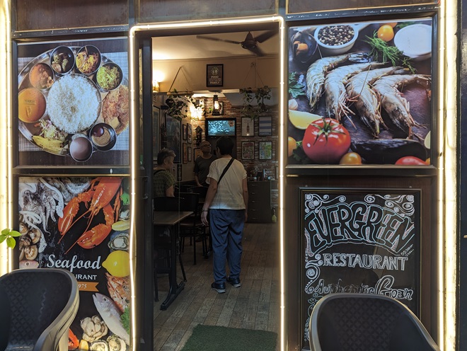 パナジの市街地にある、小さな店舗です。注文を受けてから調理を始めるので、ビール(Kingfisherパイント100ルピー)でも飲みながらのんびり待ちましょう。