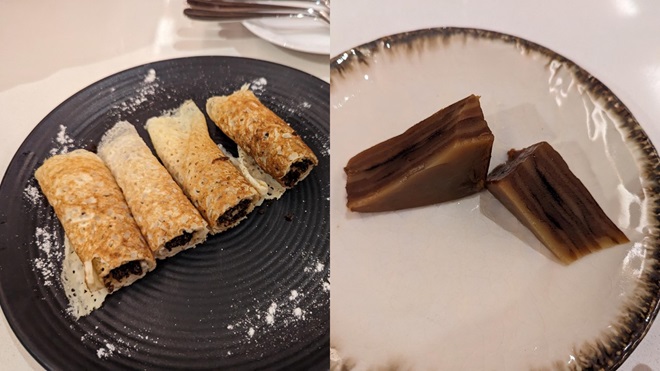 デザートは伝統パンケーキAlle Belle(左)と、ゴア版ミルクレープBebinca。