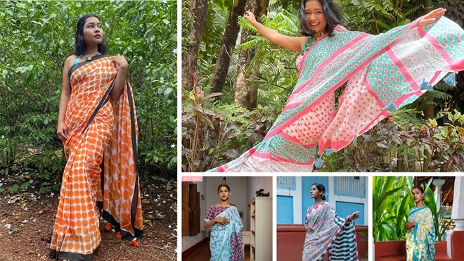 Mogasu Goa _ Buy blockprinted Mul, Chanderi, Linen Sarees online