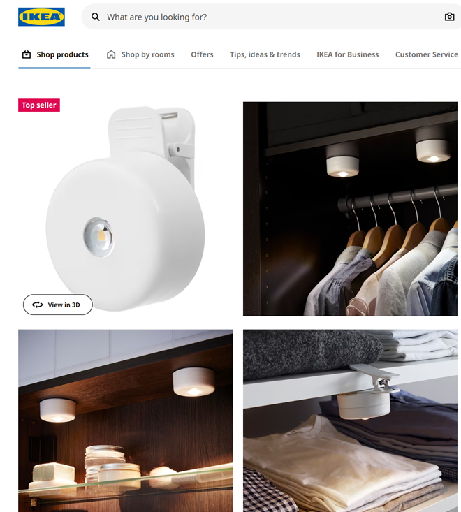 この子はこのピンチ部分の幅が惜しくて、わが家に挟むのにちょうどよい場所があまりないので、居間のソファーベッドの脚部にくっつけて足元を照らすフットライトにするか、同じくIKEAで調達した布団用ピンチでソファーベッド背当て部分の骨組みを挟み、そこへ設置して間接照明にするなどして活用させていただいている。