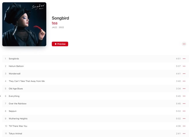 ※画像をクリックすると「Apple Music」の「Songbird」アルバムページに飛べます。