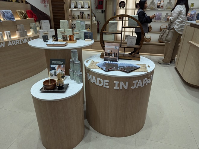 店内に入ると、自社ブランドものと見られるコスメ商品や、抹茶や煎茶などがポツリポツリと並べてあった。