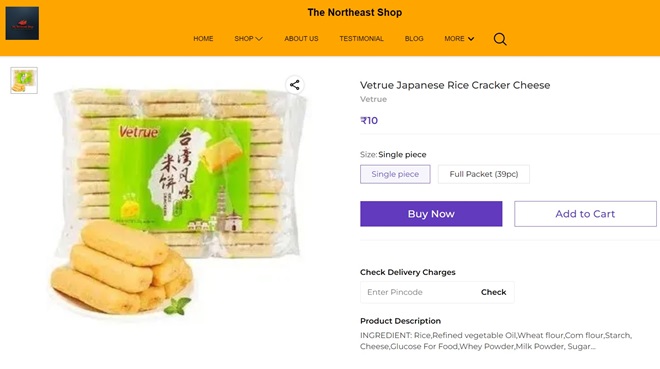 それは袋入りの「Snow Cookie」なるもの、1枚15ルピーで、日本のスーパー等に並ぶ米菓(◯の「雪の宿」に酷似)にしか見えない。