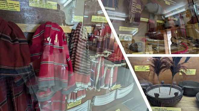 寒いメガラヤの冬を思わせる衣類や、頭に飾るアクセサリーなど。