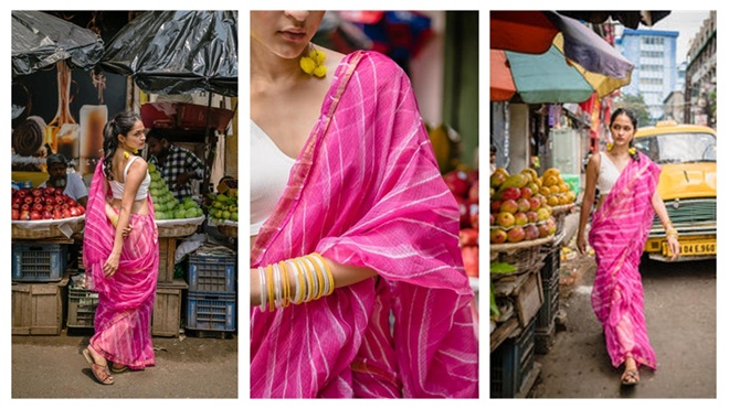 たびたびインスタグラムに表示される広告から、気になったサリーの着こなしをピックアップする。